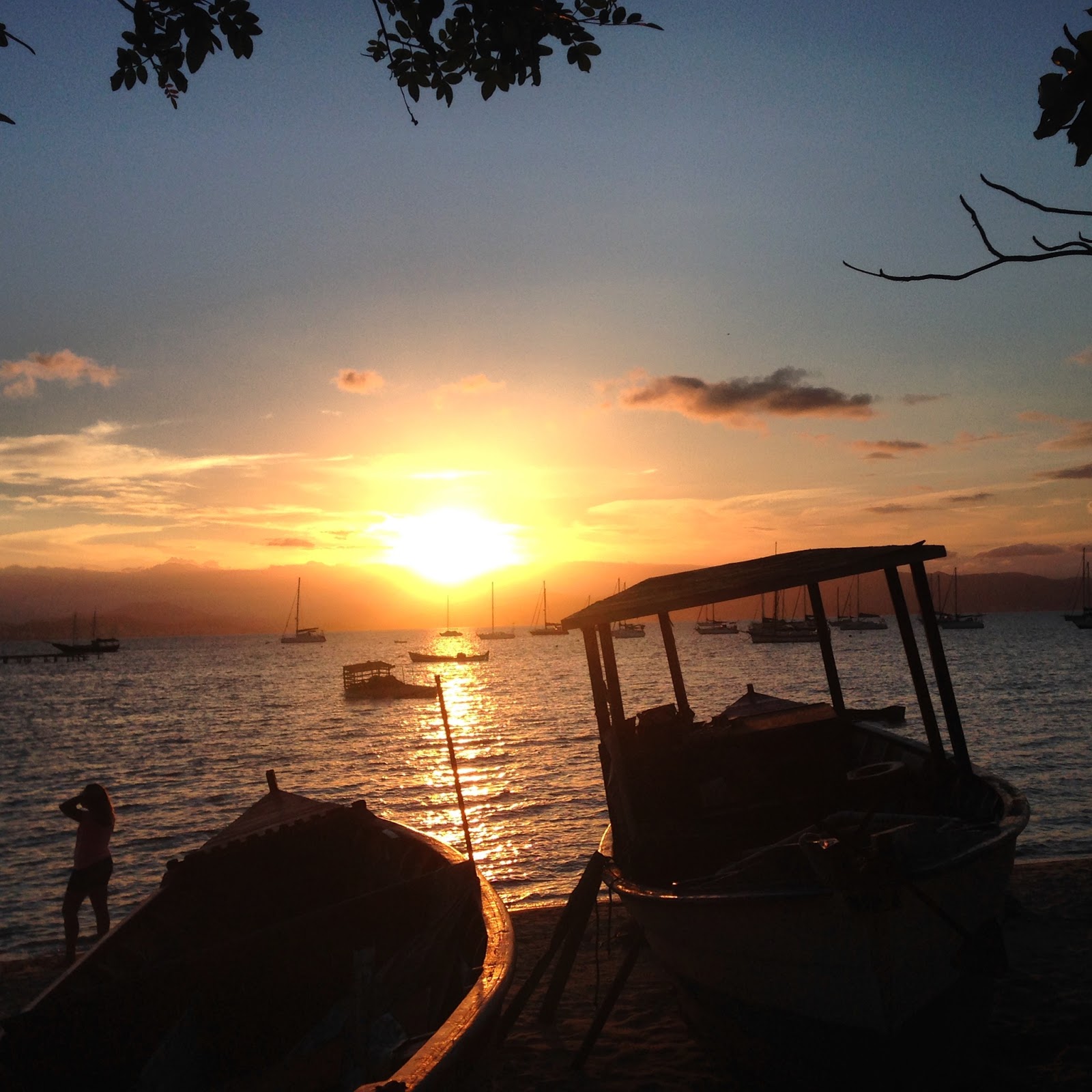 A praia de Santo Antônio de Lisboa oferece um dos mais belos pôr do sol de Florianópolis. É fim de tarde e você pode sentar em uma das mesas externas dos restaurantes a beira-mar, ou ficar na praia esperando o espetáculo da natureza.